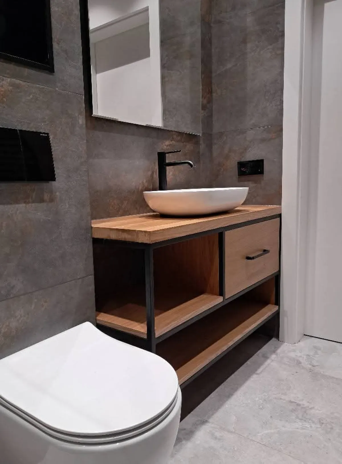 Mała łazienka 4m² całkowicie odnowiona. Pomimo niewielkiej przestrzeni pan Tomasz zaproponował układ, który sprawia że łazienka wydaje się większa. Fachowa robota.